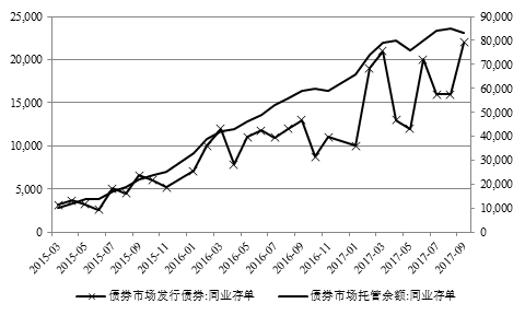 图2 同业存单发行量和托管量情况(2015/03-2017/09) 数据来源:Wind资讯。