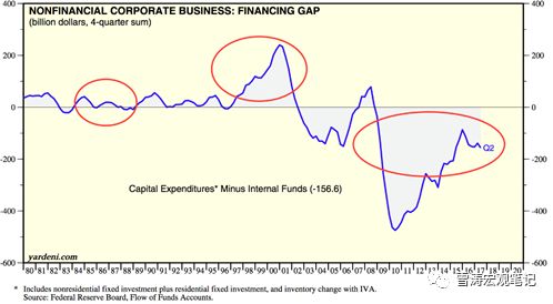 企业的杠杆周期和宏观周期一致,企业如果看好未来的前景,则会加大融资,主动加杠杆提升资产负债率。如果融资的用途是投资且投资正确有回报,主动加杠杆就成了理性扩张。但是,2013年之后美国上市企业的融资中的很大一部分,是拿去做回购了。