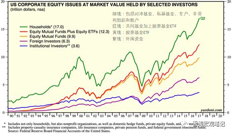 图27:美国股票市场各投资者持仓市值,股票基金ETF 在09年后飙升