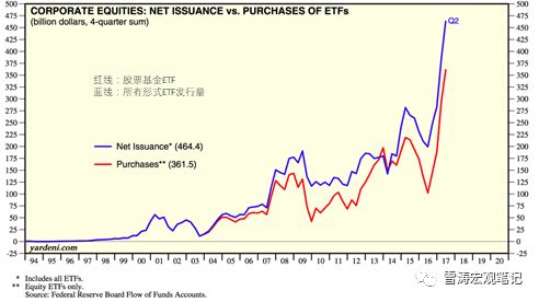 - 被动式投资盛行,在过去12个月内,投资者累计赎回了3080亿美元主动型管理基金,将3750亿美元资金投向了被动式的共同基金和ETF;