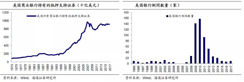 但08年金融危机的降临,暴露出了金融自由化的弊端,更暴露出金融监管未能及时调整的危险。传统的监管模式在危机前未能起到维护金融系统稳定的作用,金融自由化时期,混业经营强势扩张,创新产品层出不穷,例如美国1999年新《金融服务现代化法案》取消分业经营,商业银行也能从事投资银行、衍生品等业务,但监管却未能及时发现其中的漏洞和隐含的风险。90年代中后期到08年金融危机之前,美国商业银行持有的抵押支持证券规模爆发式增长,其中的按揭抵押证券正是引发后来08年次贷危机的导火索。