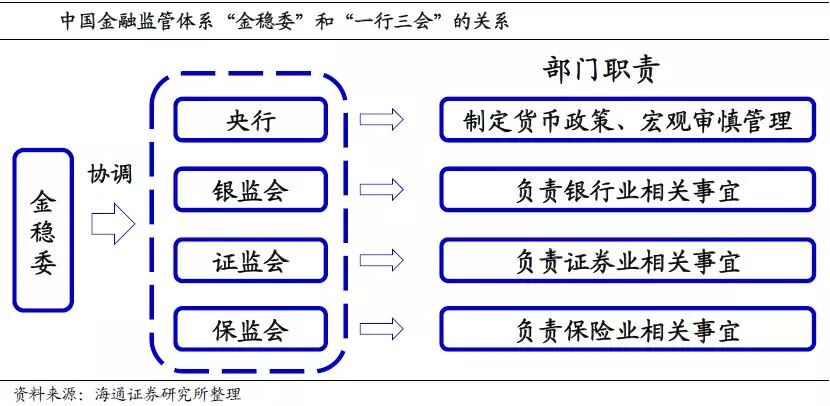 2017年全国金融工作会议决定成立金稳委,可以说是拉开了金融监管体系改革的序幕。金稳委设立的主要目的在于统筹和协调金融改革发展与监管,职责包括落实金融工作的决策部署、审议金融业改革发展重大规划、统筹和协调金融改革发展与监管、分析研判国际国内金融形势、指导地方金融改革发展与监管。金稳委立足于“一行三会”之上,发挥协调“一行三会”监管的作用,是对分业监管弊端的一种修补。