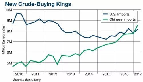 当前中国是原油进口第一大国家,特别是在低价油的买方中,对国际油价以及供应关系都有着巨大的影响力,并且中国还是世界第五大生产国(2017年)。