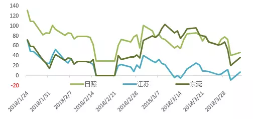 春节后,大连盘豆粕受阿根廷干旱炒作影响,价格重心节节攀高。节后至今,豆粕1805合约累计涨幅11.3%。相比之下,菜粕1805涨幅仅为9.6%。对比节后的两粕国内供需基本面,菜粕较豆粕更加宽松,因而现货较豆粕弱,如下图:图1:豆粕现货升贴水图(单位:元/吨)图2:菜粕现货升贴水图(单位:元/吨)菜粕基