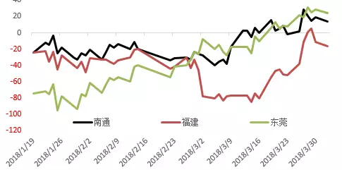 菜粕基准交割地区,福建地区升贴水为-20~-40元/吨,节后最低达到-80~-100元/吨。豆粕基准交割地区,江苏现货升贴水为0-20元/吨,前期最低为-10元/吨。升贴水表现中豆粕好于菜粕。现货偏弱,是拖累节后菜粕涨幅的主要原因。
