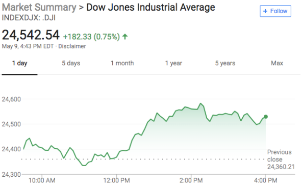 标普500指数收涨25.87点,涨幅0.97%,报2697.79点。道琼斯工业平均指数收涨182.33点,涨幅0.75%,报24542.54点。纳斯达克综合指数收涨73.00点,涨幅1.00%,报7339.90点。