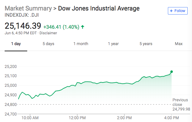 股市道指收涨约350点,纳指连续三天创收盘历史新高。