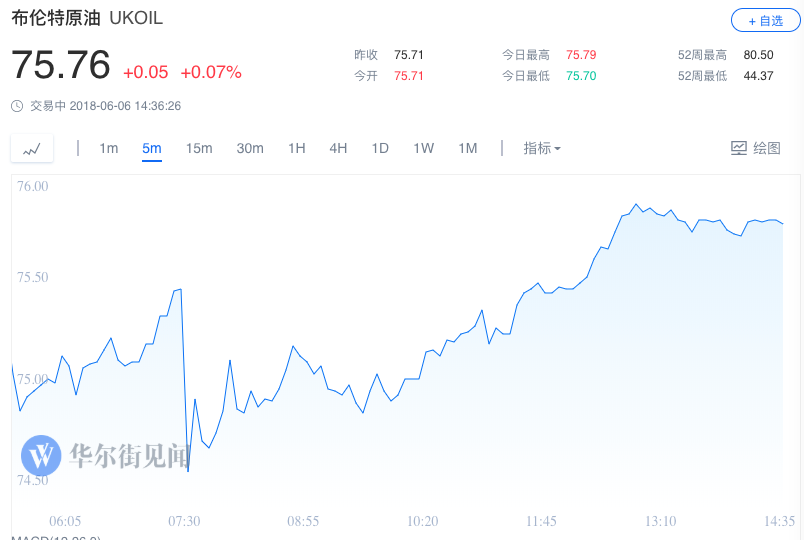 商品WTI 7月原油期货收跌0.79美元,跌幅1.21%,报64.73美元/桶,创4月9日以来收盘新低。布伦特8月原油期货收跌0.02美元,跌幅0.03%,报75.36美元/桶。