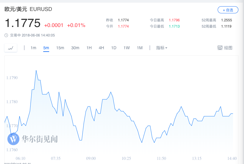 外汇美元指数下跌0.1%。欧元上涨0.5%,至1.1773,创10个交易日新高。