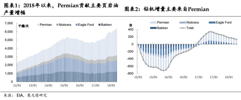 今年年初以来,美国石油活跃钻机数及原油产量持续增加,石油活跃钻机数增加117座至859座;原油产量上涨123.3万桶/日至1072.5万桶/日,不断刷新历史新高;Brent-WTI原油价差也飙升至11美元/桶,创三年新高。本篇文章通过梳理据决定美国原油产量的几个变量,得出三个结论:第一,2018年原油产量的增幅贡献主要来自Permian;第二,在2018年Brent原油价格中枢上升至70美元/桶的判断前提下,页岩油产量增幅持续性的三个指标DUC、钻机数以及采油效率显示,短期内美国页岩油仍然具有上涨空间,且上涨幅度或因DUC的存在而加大;第三,Brent-WTI因美原油产量不断上涨的预期将继续扩大。