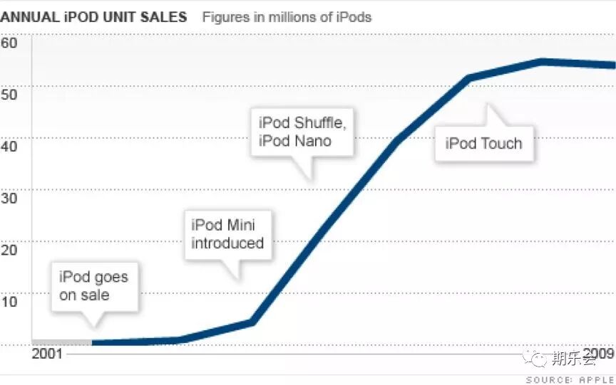 比如我们看苹果公司iPod这个产品的销售历史,虽然历经多次创新,但总的来看还是一条S曲线——