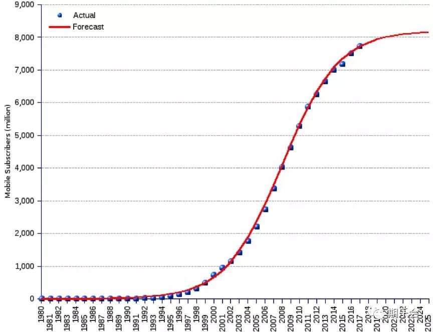 全世界手机用户的增长情况,完美符合S曲线——