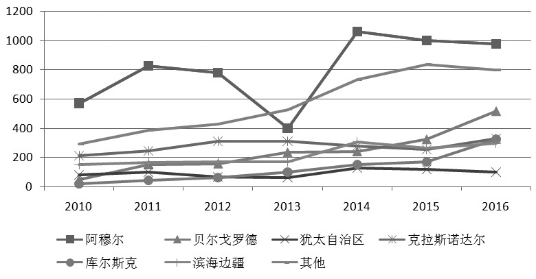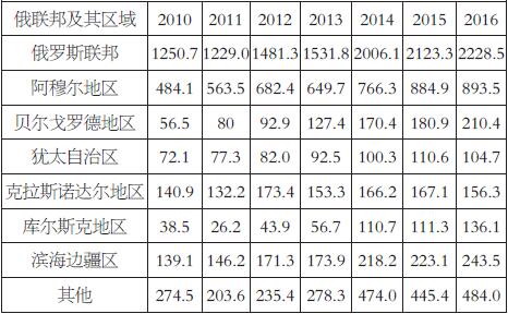 表为俄罗斯主要地区大豆种植面积(单位:千公顷)