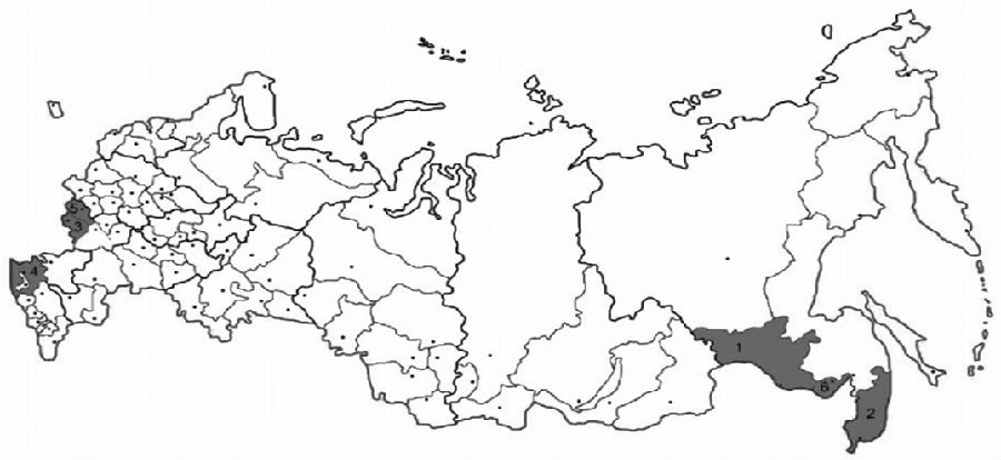 俄罗斯大豆种植历史悠久,在19世纪20年代就已经开始了,种植区主要在北高加索、外高加索、乌克兰和远东地区。种植带由乌克兰西部经过高加索和中亚呈断续的带状向东延伸。现在俄罗斯大豆主要种植区在远东的阿穆尔州、滨海边疆和犹太自治州,约占俄罗斯大豆种植面积的60%,其中,阿穆尔州大豆产量约占全国大豆总产量的1/3,在全国7个大豆主产州中居于首位。从俄罗斯大豆主产区图上可以看出,远东南部地区为主要的大豆产区,与我国东北地区相邻,土地辽阔,资源丰富,气候条件也与我国东北地区相似,铁路和公路与中国相通。