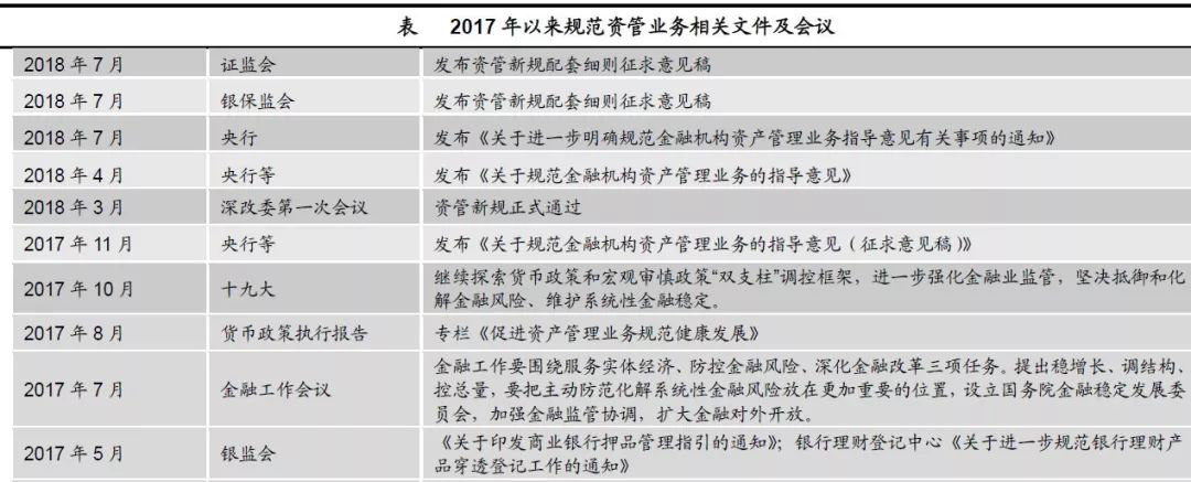 7月20日,央行发布《关于进一步明确规范金融机构资产管理业务指导意见有关事项的通知》,银保监会发布《商业银行理财业务监督管理办法(征求意见稿)》,证监会发布《证券期货经营机构私募资产管理业务管理办法(征求意见稿)》及《证券期货经营机构私募资产管理计划运作管理规定(征求意见稿)》。