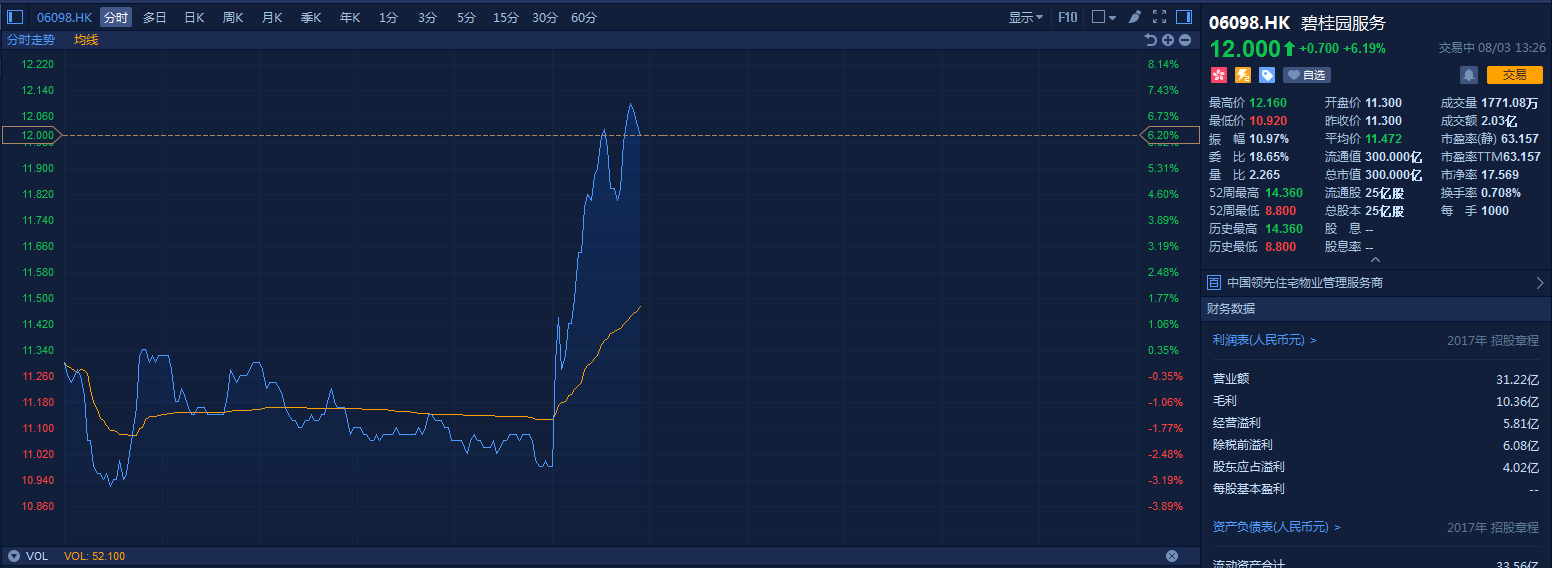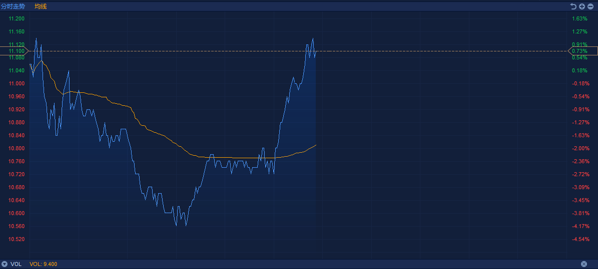 过去一个月以来,在港交所上市的碧桂园股价大幅下跌。今日早盘,该股跌2.72%,至10.72港元。在媒体见面会结束之后,碧桂园股价午后由跌转涨: