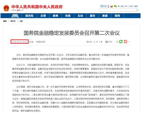 今日(8月3日)上午10点左右,中国政府网发布了国务院金融稳定发展委员会第二次会议的信息,为短短1个月内的第二次金稳会会议,并且是在中央政治局刚对下半年经济定调后立即召开会议。
