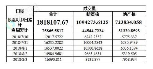 2017/2018年度储备棉轮出截至8月3日成交量走势
