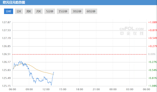 欧元/日元在上周五暴跌1.2%后,周一亚市早盘一度暴跌1%,至125.26。