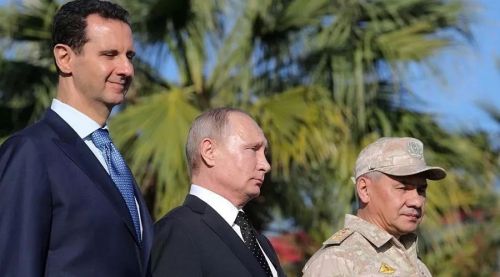 (普京和叙利亚总统阿萨德检阅军队)