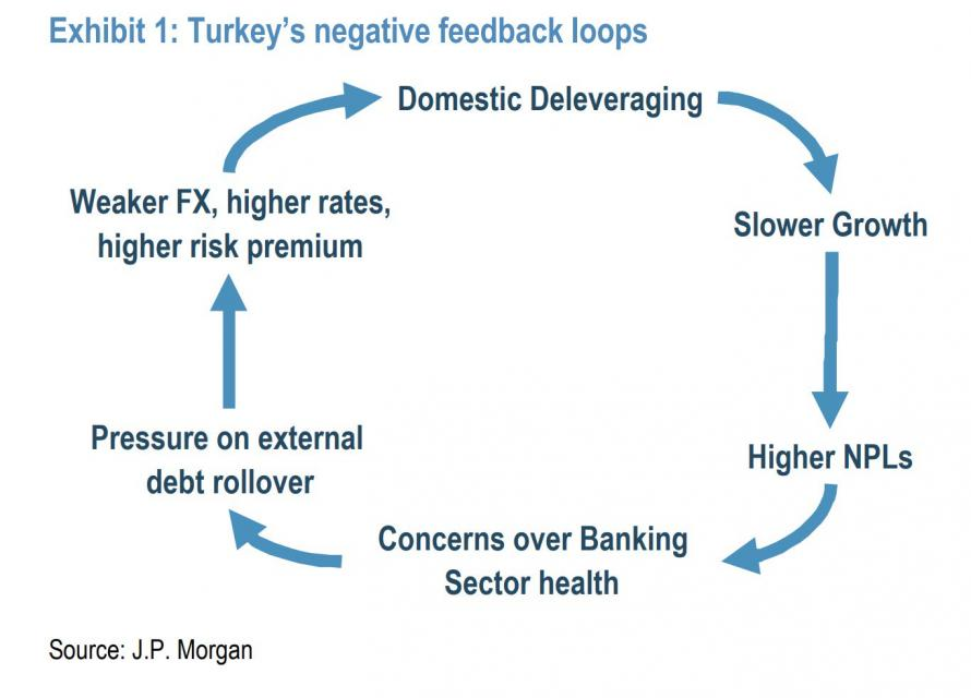 即使土耳其央行放开手脚大幅加息,也并非能拯救经济的长久之策。据摩根大通分析,这会触发“里拉贬值后加息——融资成本上升——借款人无力偿债——经济增长进一步放缓——外部融资变难——里拉再次贬值”的恶性循环。