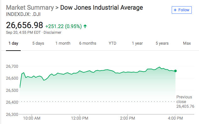 尽管如此,在资金的不断涌入下,美股依然在继续创新高。截至周四收盘,道指上涨251.22点,涨幅0.95%,报26656.98点,突破1月的高位创下历史新高。标普500指数也收涨0.78%,报2930.75点,再度刷新历史新高。