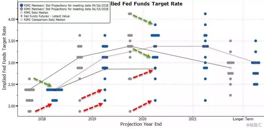 点阵图还显示,美联储官员对2019年年底的联邦基金利率预测中值为3.125%,意味着美联储还将在明年加息3次,与此前预期一致。