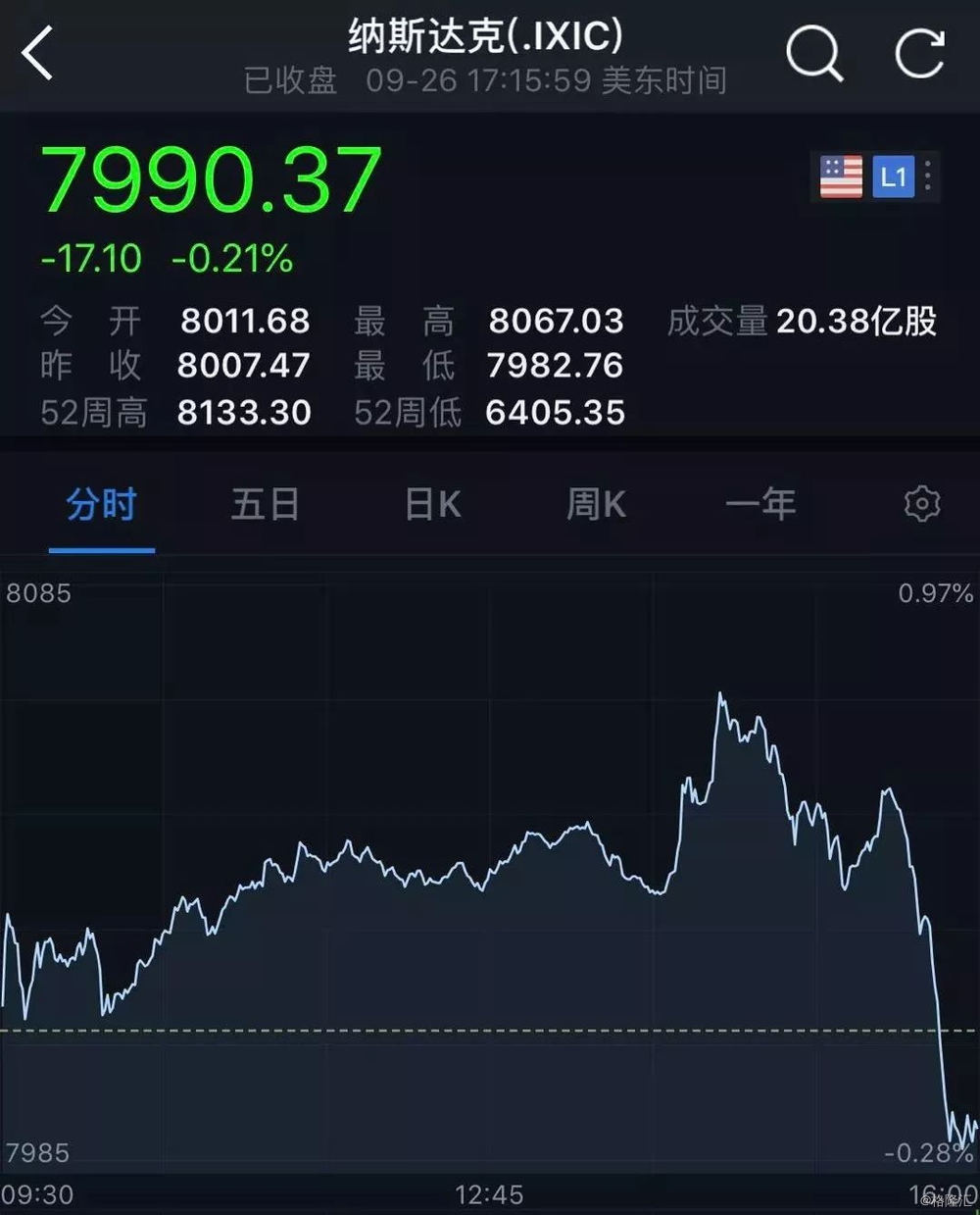 美股尾盘跳水,道指跌超100点。美联储如期加息25个基点。鲍威尔称,股市已处于历史高位。能源股与金融股领跌。