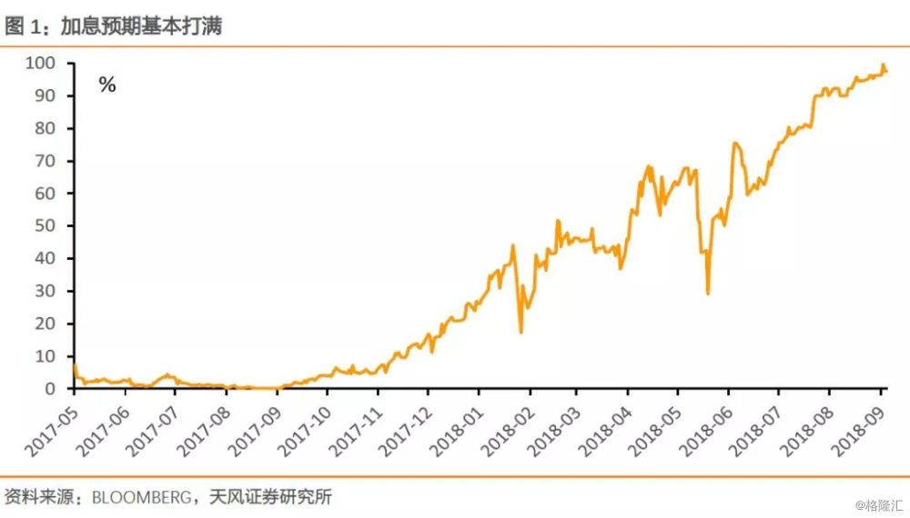 此外,9月7日美国劳工部公布的8月非农就业数据显示,与市场预期的会出现季节性下调相反,就业和薪酬数据都远超市场。8月,美国非农就业人口新增20.1万人,高于预期的19万人。同时,美国8月平均每小时工资环比增长0.4%,高于7月的0.3%,同比增速为2.9%,创2009年6月以来最大增幅。