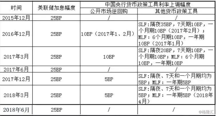 来看看历史情况,2016年12月、去年3月和12月以及今年3月美联储加息后,在中国银行间市场上,包括逆回购、中期借贷便利(MLF)在内的货币市场利率都出现了上调。不过去年6月以及今年6月美联储最近一次加息,央行并未跟随上调公开市场利率。