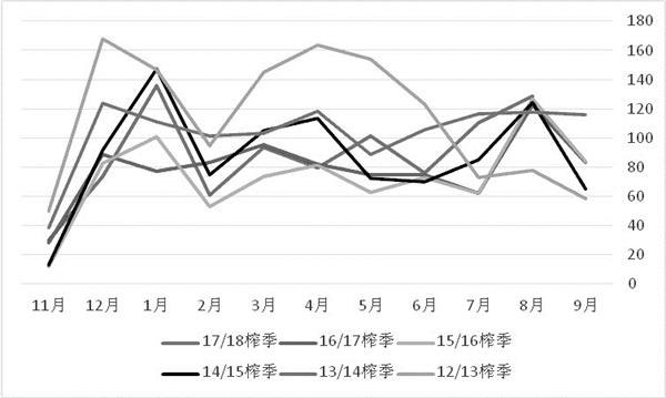 当前国内白糖保护性关税政策仍在实施,国内炼糖厂库存持续下降,预计到年底保税库存将完全消化,炼糖厂原糖库存降至近年来较低水平。与此同时,国内外糖市结构分化,远期进口成本预计会逐渐走高。另外,国内糖市的非正规渠道进口糖源趋于下降。国际市场部分国家向我国发运的非正规渠道糖源数量同比下降,这与国内有关机构持续高压管控有关。数据显示,截至7月底,2017/2018榨季缅甸白糖进口量同比下降32万吨。尽管2018年6—7月进口量有所恢复,但由于中国有关机构严控白糖走私,缅甸近期的发运活动基本停滞,缅甸白糖进口走私总量大幅收缩。