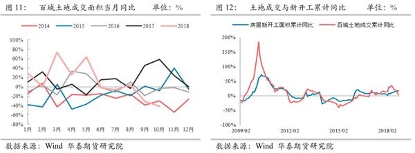 资金筹集困难加大,今年土地流拍明显上升,土地溢价率缩窄。从百城成交土地占地面积来看,2018年9月成交3960万平米,同比降30.81%,10月成交3732万平米,同比下降41.77%。11月按目前周度数据来看,下降幅度仍在40%左右。按领先6个月测算,明年3月就会见到新开工大幅下行,且由于今年的高基数原因,预计明年新开工同比在-5~-8%之间。从地产政策方面来看,国家强调定力,再次放松的概率极低,地产行业的洗牌或将就此展开,相对应的钢材消费亦将大幅下行,影响幅度在2~3%之间。