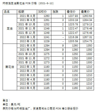 美国农业部8月发布供需报告,预计2021/22年度美国大豆播种面积8760万英亩不变,大豆单产50蒲/英亩,低于上月预测的50.8蒲/英亩,产量43.39亿蒲,较上月下调0.66亿蒲;出口量20.55亿蒲,压榨量22.05亿蒲,均较上月下调0.2亿蒲。虽然单产和产量下调,但期初库存上升以及需求下调,期末库存仍维持在1.55亿蒲。全球大豆产量2021/22年预计3.84亿吨,比上年度的3.63亿吨增加2037万吨,依然处于增产状态。2021/22年度全球大豆需求量为3.79亿吨,比上年度的3.66亿吨增加1249万吨。由于大豆需求增幅低于产量增幅,2021/22年度全球大豆期末库存9615万吨,比上年度的9282万吨增加333万吨。