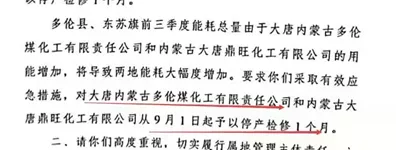 今日(9月1日)上午,市场传闻神华榆林、中煤鄂能化、大唐多伦三套煤化工装置,因当地政府能耗双控的要求,将从9月开始进行降负停产。具体传闻如下: