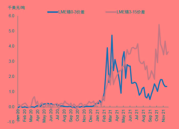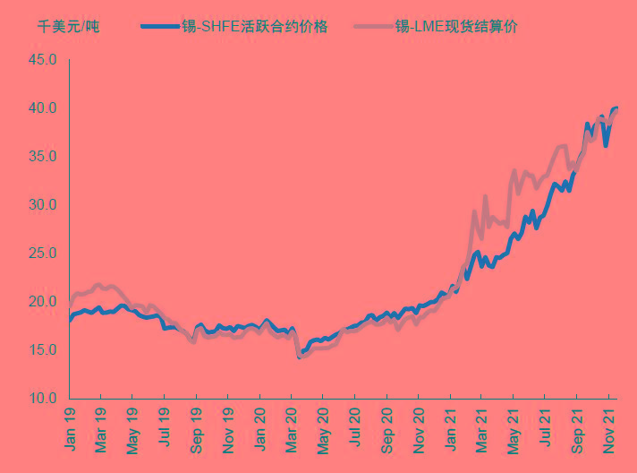去年二季度开始,海外市场受疫情影响,工业活动减弱,国内锡进口窗口打开,全年累计净进口1.3万吨。而今年,海外需求和锡价表现更为强劲,年初至今中国累计净出口精炼锡约9600吨,国内交易所库存从3月的9千吨下降至10月的最低1千吨;LME库存也下降至1千吨以下。经历了去年和今年国内和海外的需求反弹,目前全球显性库存降至多年低位;根据ITA全球锡消费者问卷调查(样本占全球消费47%),2020年末受访消费者的精炼锡库存增加至1.8万吨,而由于今年强劲的需求,这部分累积的库存持续减少。也就是说,当下交易所库存和消费者库存都处于低位,而且海运积压问题更是加剧了如美国、欧洲等供应高度依赖进口的区域现货升水。进入四季度,国内个别冶炼厂复产以及马来西亚冶炼厂复产可能带来边际增量,11月下旬海外进入假期,下游消费者补库意愿较低,不仅因为锡价高企,其他关键材料断供也造成了生产率的降低,海外多个地区现货升水回落[1]。