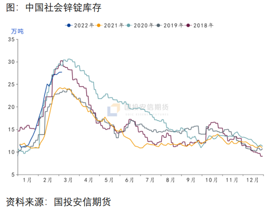 同时,全球锌资源相当分散,我国亦为锌资源供应大国。短线沪锌已经逼近 07 年上市以来高位。与上一波牛市相比,锌精矿供求环境、中国消费的加速度已不复求。春节以后,国内锌锭持续累库,入库幅度已超预期,反映了基建拖底、高价背景下的消费平淡。同时,3 月国内锌锭供应的稳定性也较强。由于国内锌锭自给率高,2022 年度对进口锌锭的需求有限,国内现货锌价将有较大独立性。周二上午 SMM0#锌报 26610 元/吨,建议关注现货报价,警惕高位回调风险。