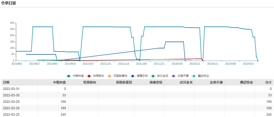 当前生猪处于传统消费淡季,消费不瘟不火,加上疫情的反复使得短期消费端恐难有较大提升。整个三月份样本企业月度平均屠宰量11.4万头/日,月度环比增加15.49%。3月冻品库容率19%,月同比增加2.95%。