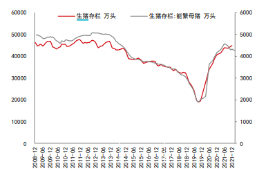 官方数据显示,12月生猪存栏44922万头,较9月末+2.65%,同比+10.5%;2月能繁母猪存栏4268万头,月环比-0.513%。