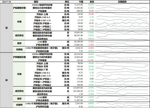 1.SMM调研显示,7月1日至7月7日当周,原生铅周度开工率56.25%,环比下降3.9个百分点;再生铅企业周度开工率41.69%,环比下降2.4个百分点;铅蓄电池企业周度开工率63.63%,环比持平。