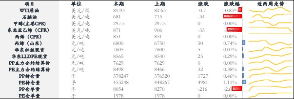 1、PP(7529, -100.00, -1.31%)拉丝排产率上调至31.86%,纤维排产率上调至9.41%,均聚注塑排产率稳定在11.64%,共聚注塑排产率上调至18.26%。