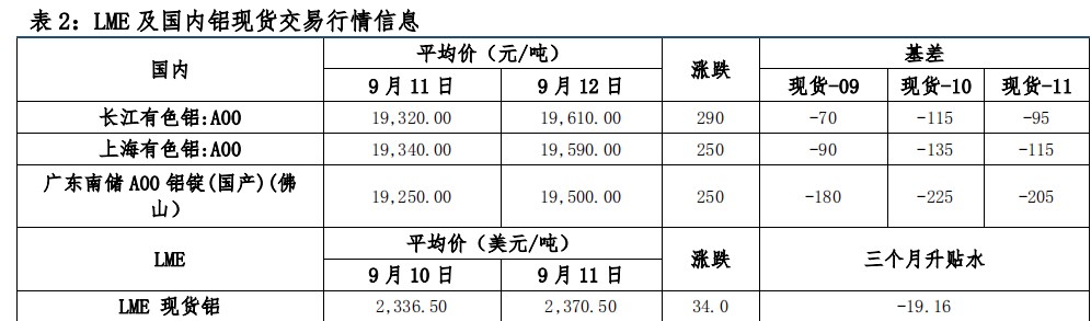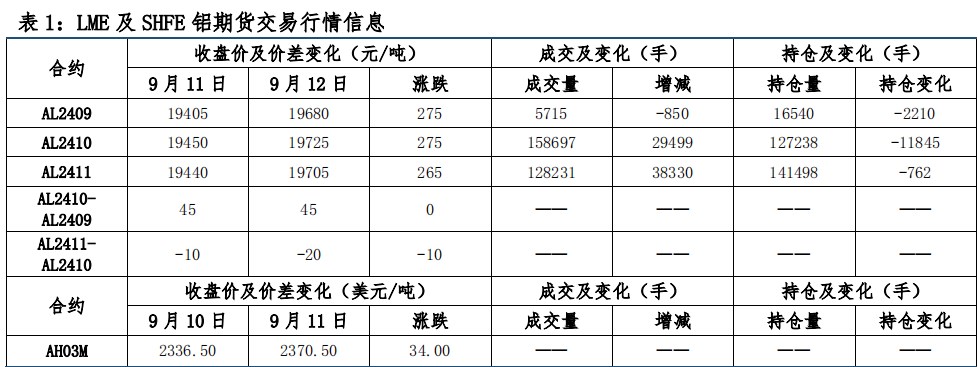 宏观情绪一般,基本面有所改善。沪铝 10 合约运行区间 19400-19900 元/吨,多单国庆节前可暂时持有。