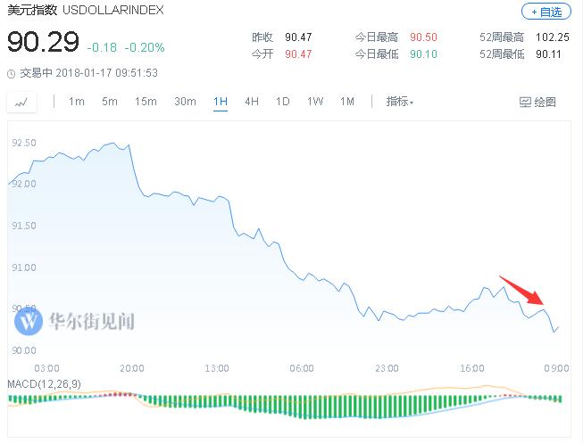 美元指数小幅下跌:
