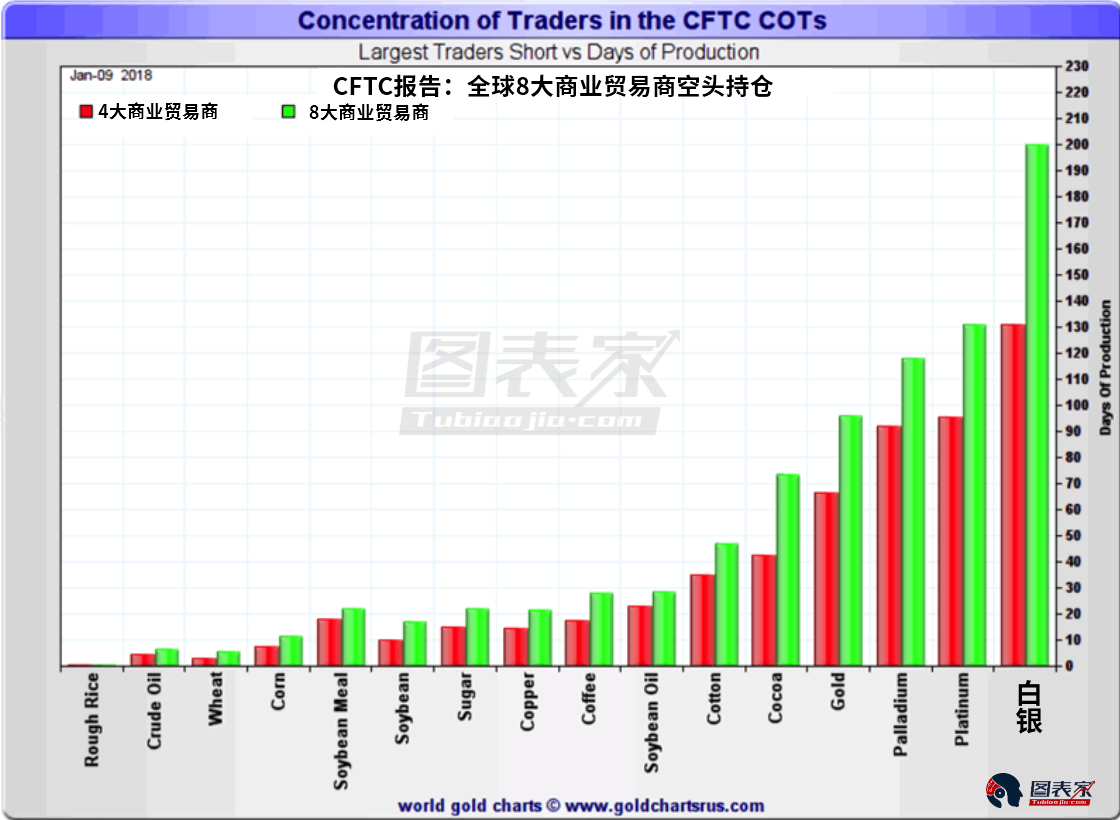 本周报告显示,全球8大白银商业贸易商目前持有的白银空头合约相当于全球200天的白银产量。