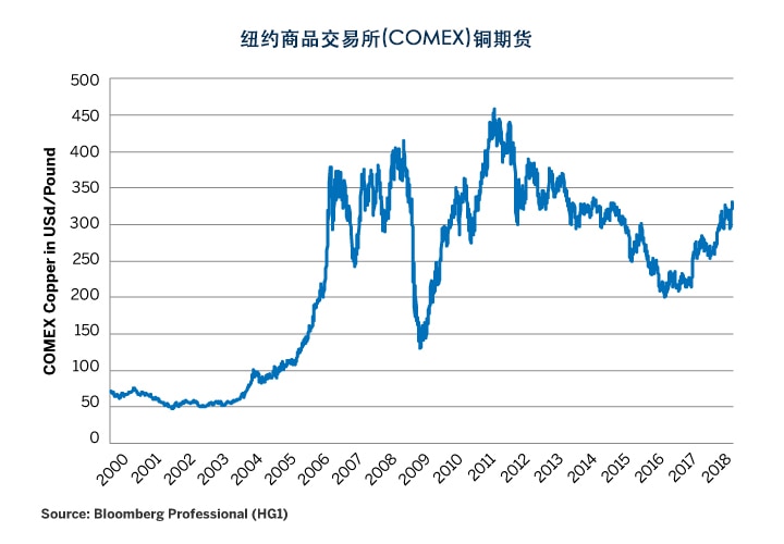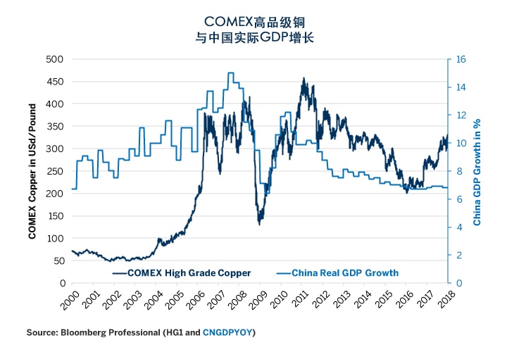究竟是什么样的下行风险让铜期权的交易者如此担心?我们认为可以用两个词来概括:中国和股市。经过多年增长放缓后,中国经济在2016年和2017年稳住阵脚,这对铜生产商来说是一个意外的利好消息(图5)。