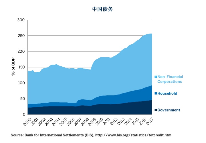 很多人担心中国经济会在2015年崩盘,但由于习近平政府在他成功连任之前采取措施刺激经济,中国的增长率在2016年和2017年有所好转。连任之后,现在面临的风险是中国经济将开始减速,高额债务的压力(图6)、借贷增长受压以及对环境问题的重视,都有可能拖慢增长。