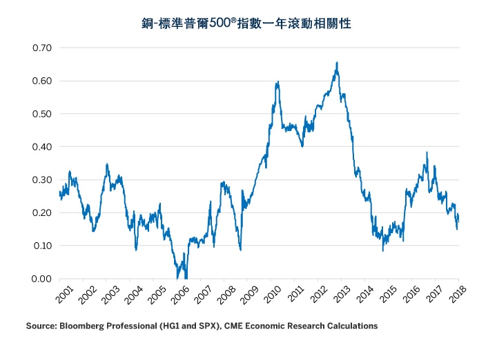 图9:铜通常与美国股票呈正相关性,但有时不明显