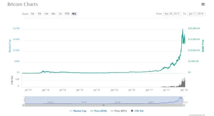 这篇论文是在2015年发表的,成文时间则更早,和现在比,当时比特币的价格几乎是贴着横轴(附比特币价格走势图),不知道四位教授到底买了比特币没有,如今看到2017年末的价格走势会是什么想法。