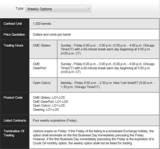 除了这一重要的特点之外, WTI原油每周期权还有如下特点: