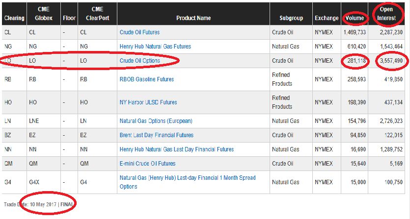 芝商所WTI原油 (交易代码:CL)期权市场是世界上最大的场内交易原油期权市场. 从每天的交易量来看, WTI原油期权(交易代码:LO) 在芝商所所有交易的各类能源产品中名列第三;从未平仓合约来看, 在整个芝商所内所有交易的各类能源产品市场中名列第一。