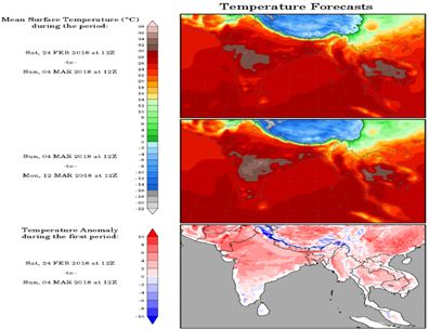 26日至28日,南方地区自西向东将出现一次明显降雨天气,其中江汉、江淮、江南大部有中到大雨。28至3月1日,受较强冷空气影响,华北、 黄淮、东北地区中南部平均气温下降6~8℃,局地降温幅度达10~12℃,并伴有4~6级偏北风。内蒙古东部、东北地区有小到中雪或雨夹雪, 局地大雪。3月2-4日,另一股较强冷空气自西向东影响我国中东部,淮河及秦岭以北大部地区将出现4~6级偏北风,气温下降6~8℃,其中 内蒙古、东北地区中南部的部分地区下降10~12℃;江汉、江淮及江南大部有小到中雨,局地大雨;华北北部和东北地区有小雪或雨夹雪。